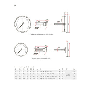 Термометр аксиальный Росма 1/2 НР(ш) d63 мм шток 46х6 мм 120°С (2409)