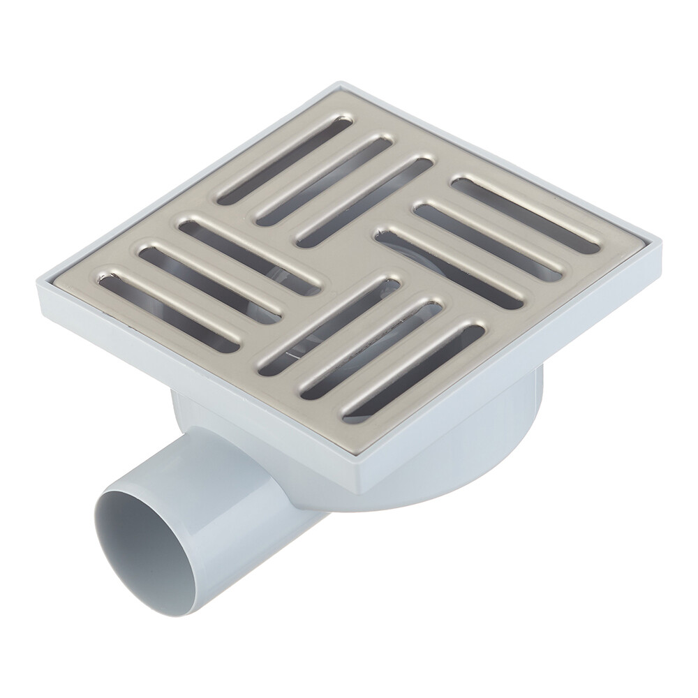 Сливной горизонтальный точечный трап с гидрозатвором и решеткой из нержавеющей стали 150×150 мм.
