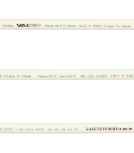 Состав: Слой сшитого полиэтилена (PEX b), слой алюминия, слой сшитого полиэтилена (PEX b).