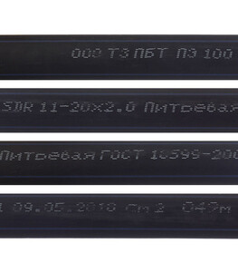Расшифровка маркировки: ПЭ-100 — марка полиэтилена, 20 мм – наружный диаметр.