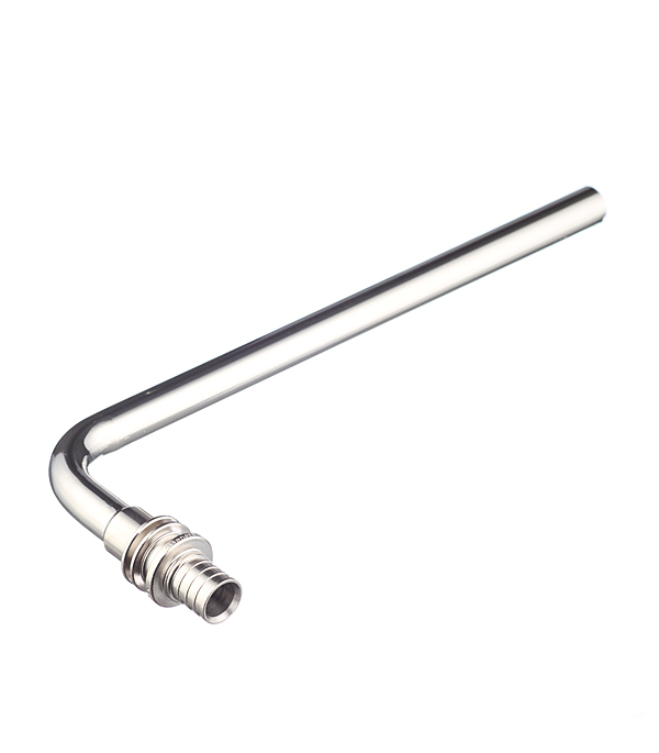 Основание фитинга под натяжную гильзу выполнено из латуни, а элементы для подключения к радиаторам выполнены из медных трубок. Фитинг снаружи покрыт никелем.