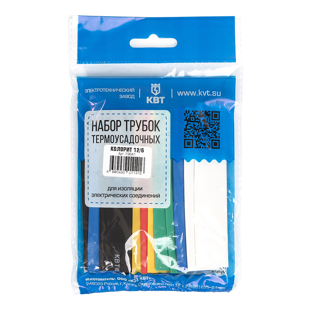 Трубка термоусадочная КВТ Колорит ТНТ нг 12/6 мм 100 мм 6 цветов (20 шт.)