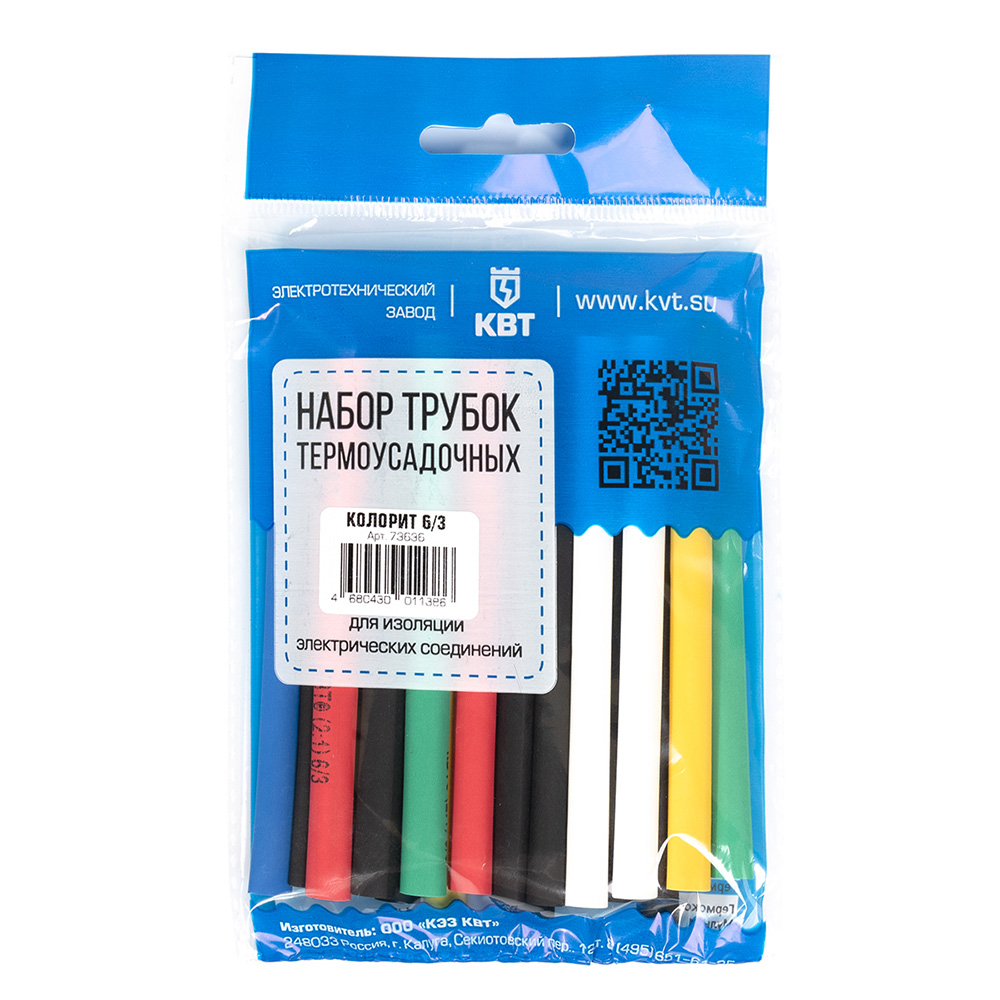 Трубка термоусадочная КВТ Колорит ТНТ нг 6/3 мм 100 мм 6 цветов (20 шт.)
