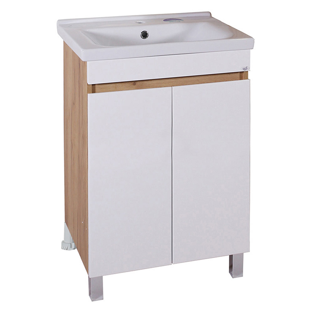 Тумба под раковину АСБ-Мебель Марко 60 см напольная белая/дуб золотой (10740)