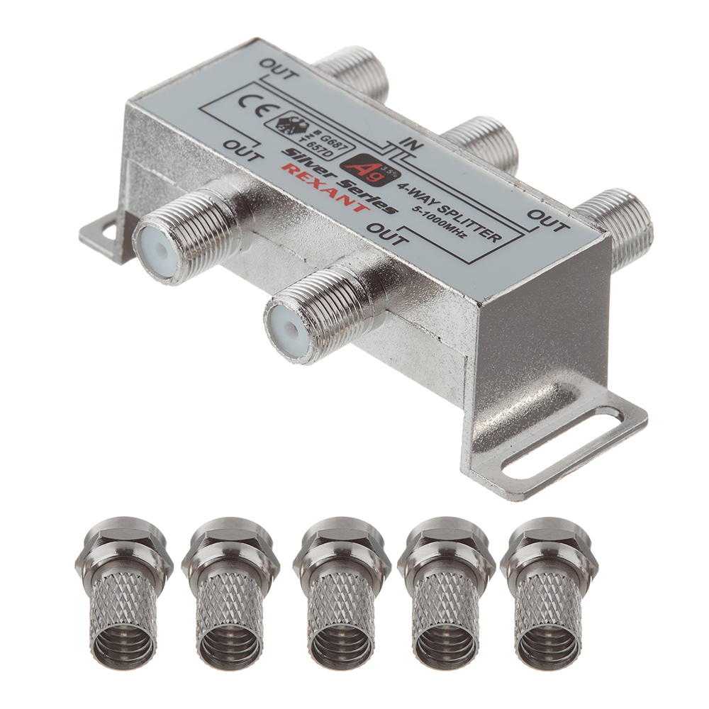 Предназначен для телевизионных систем и используется в домах и квартирах, где требуется подключить несколько телевизионных аппаратов к одной антенне. Сплиттер распределяет поступающий на вход сигнал поровну на его выходы, что обеспечивает одинаково четкое изображение на всех подключенных устройствах. Он имеет четыре выхода для сигнала и подключается с помощью стандартных F-разъемов. Делитель комплектуется необходимыми F-разъемами. Пайка внутри делителя осуществляется с использованием серебросодержащего припоя, что позволяет получить сигнал высокого качества и увеличить надежность. Делитель имеет надежный металлический корпус. Полная комплектация ТВ сплиттера (F-разъемы в комплекте) позволяет удобно и быстро монтировать телевизионный кабель и подключать аппаратуру. Данный делитель подходит для сигналов с частотой 5-1000 МГц, что соответствует стандартному эфирному телевидению.