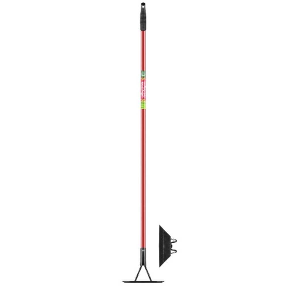 Рабочая часть из холоднокатаной стали. Трапециевидное лезвие. Металлический черенок с порошковой покраской. Полипропиленовая рукоятка с отверстием для подвеса.