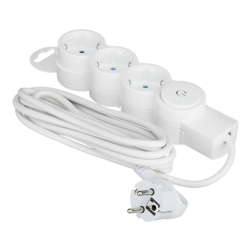 Удлинитель Düwi 3 розетки 3 м ПВС 3х0,75 кв.мм 10 А 2,2 кВт с кнопкой белый (32008 3)