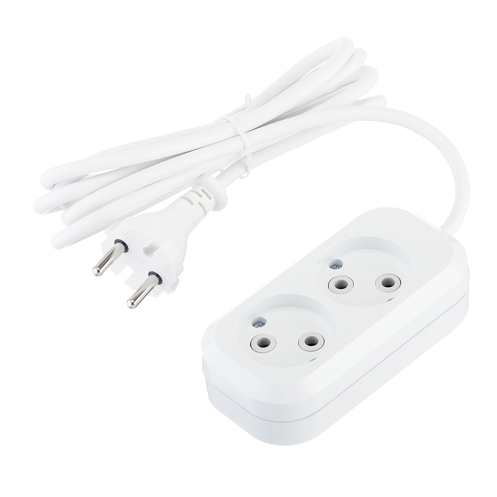 Удлинитель Makel 2 розетки 2 м ПВС 2х0,75 кв.мм 10 А 2,2 кВт белый (MGP102)