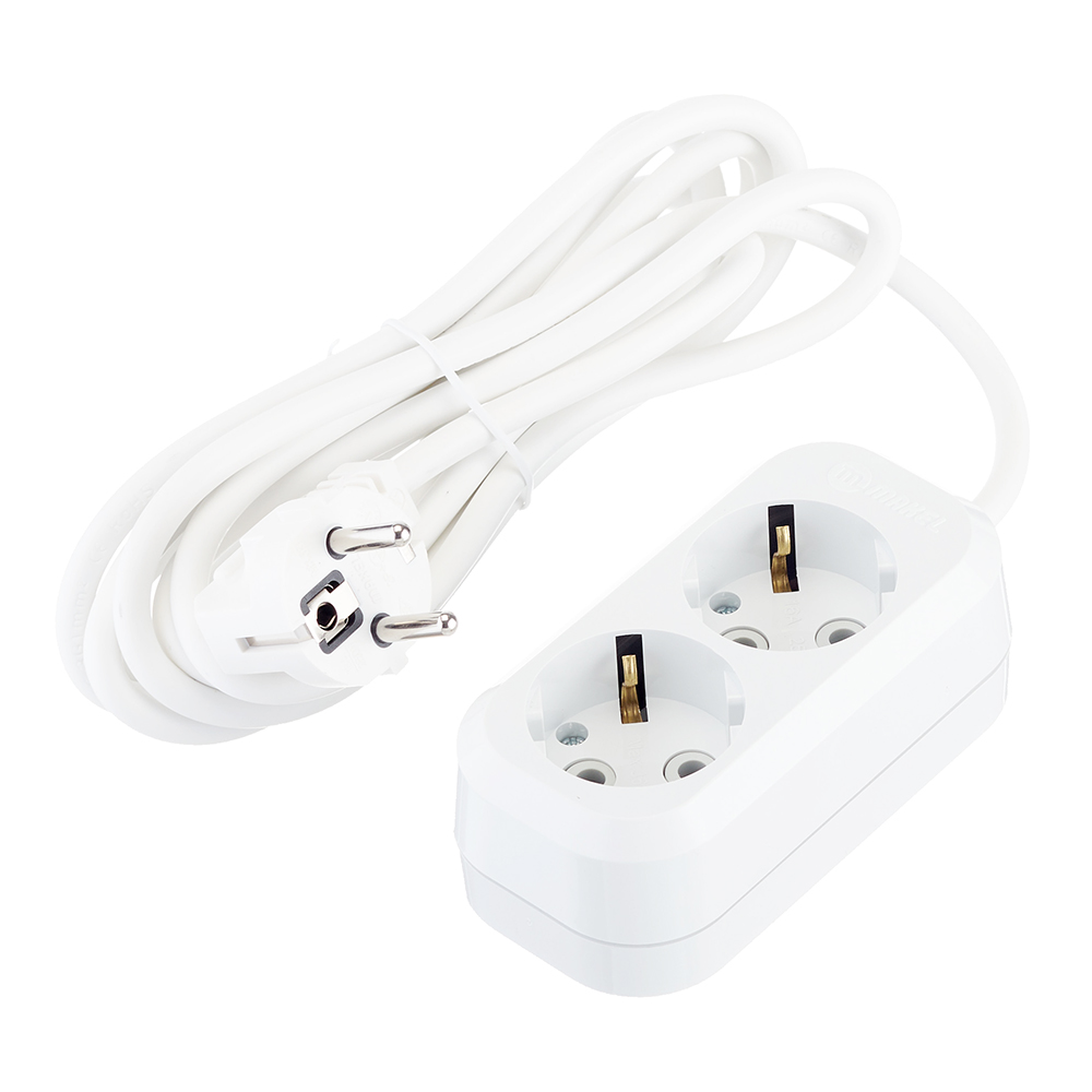 Удлинитель Makel 2 розетки 3 м ПВС 3х1 кв.мм 16 А 2,2 кВт белый (MGP113)