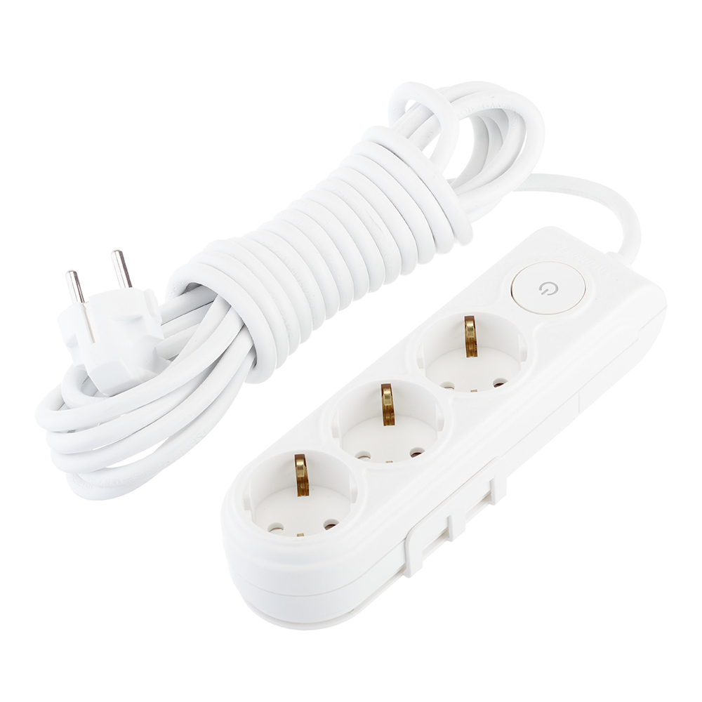 Удлинитель Makel 3 розетки 5 м ПВС 3х1 кв.мм 16 А 2,2 кВт с кнопкой белый (N3310063)