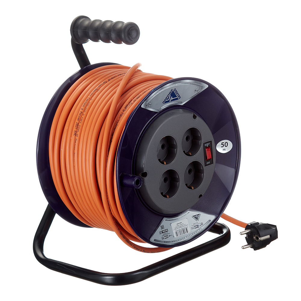 Удлинитель Партнер Электро с заземлением 50 м на катушке 3,5 кВт 4 розетки ПВС 3х1,5 кв.мм IP44