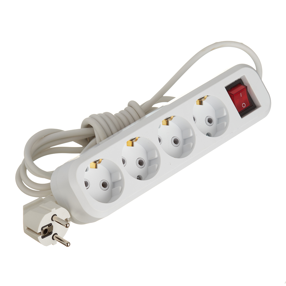Удлинитель Stekker 4 розетки 3 м ПВС 3х0,75 кв.мм 10 А 2,2 кВт с кнопкой белый (39524)