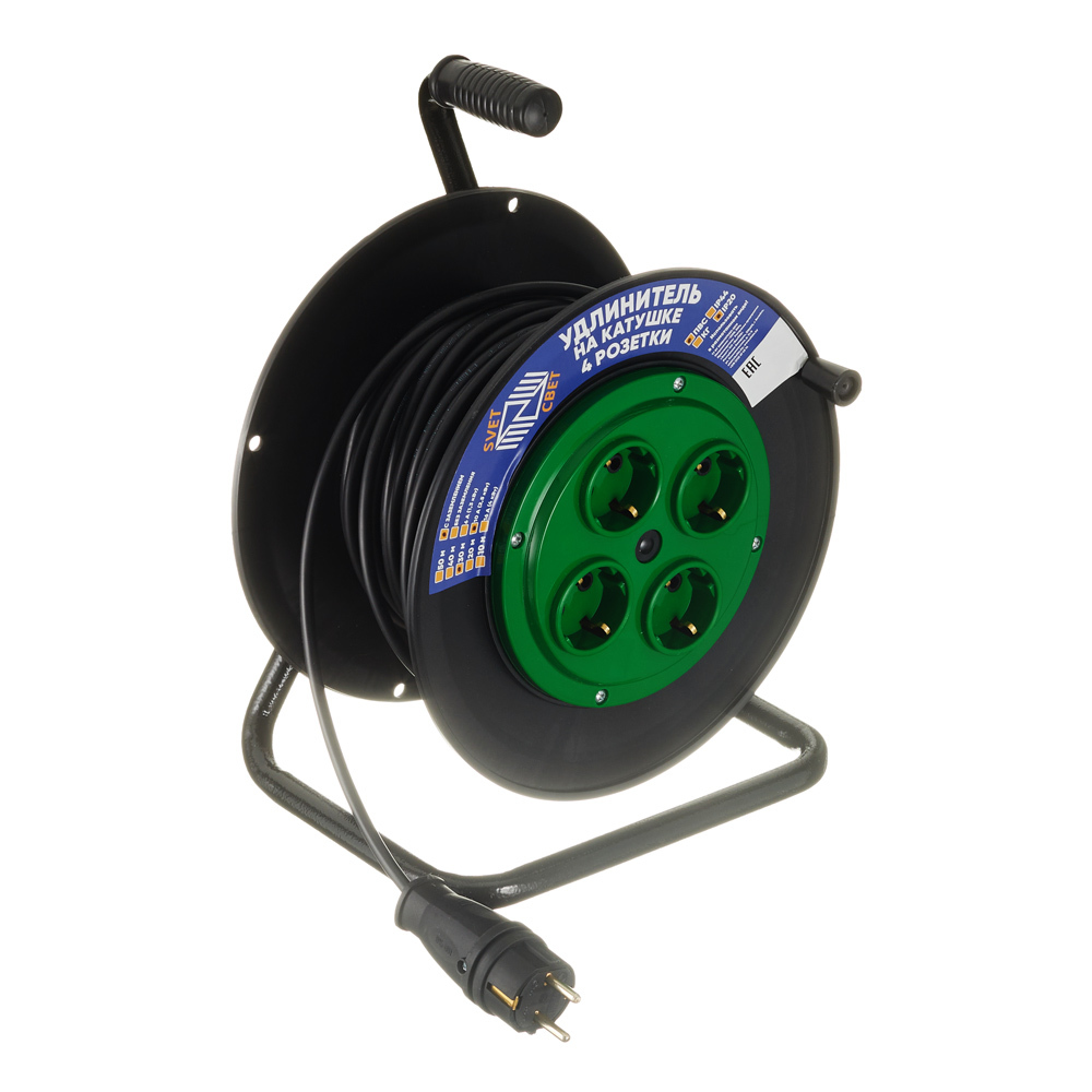 Удлинитель Svet с заземлением 30 м на катушке 2,2 кВт 4 розетки ПВС 3х1 кв.мм IP20