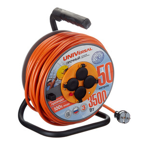 Удлинитель UNIVersal с заземлением 50 м на катушке 3,5 кВт 4 розетки ПВС 3х2,5 кв.мм IP44