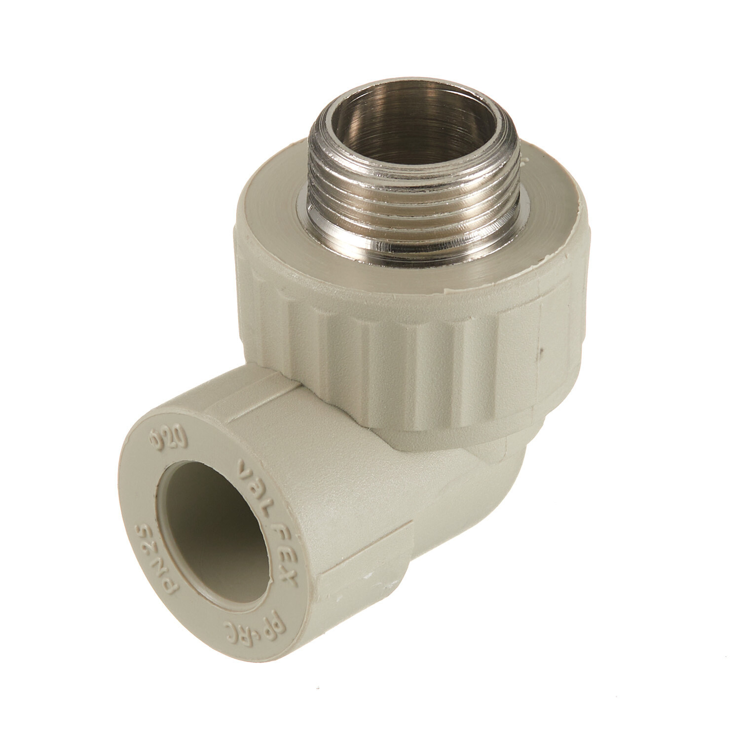 Угол полипропиленовый Valfex комбинированный 20 мм х 3/4 НР(ш) серый (10126220Г)