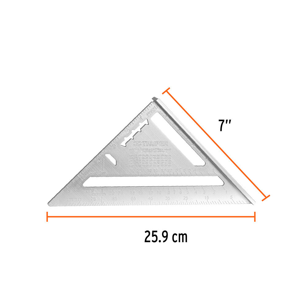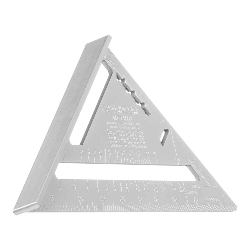 Предназначен для кровельных и плотницких работ, обладает высокой точностью и прочностью. Угольник выполняет функции: измерения, транспортира, циркуля, уровня, рейсмуса.
