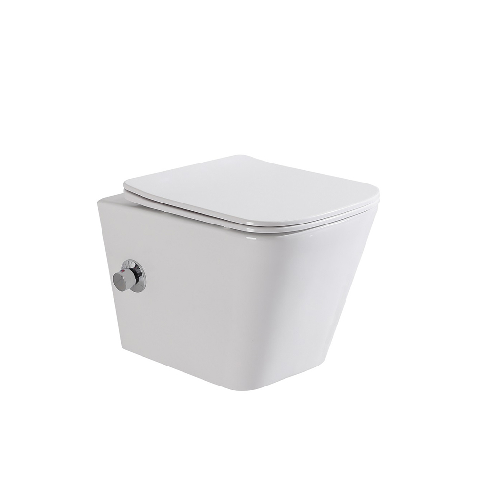 Унитаз подвесной безободковый BelBagno Due и с функцией биде и сиденьем из дюропласта с плавным закрытием. Имеет установленный встроенный смеситель.