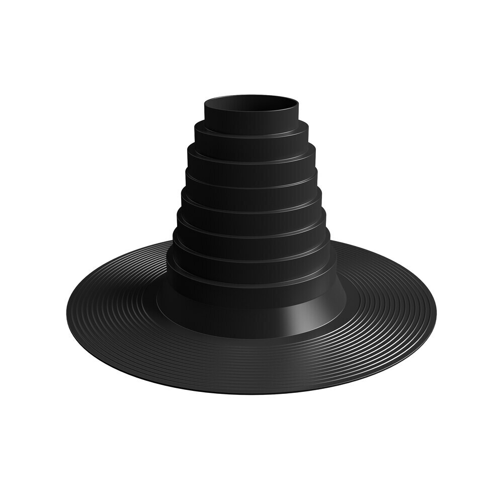 вентиляционных воздуховодов и теплоизолированных труб дымоходов диаметром от 90 до 175 мм. Уплотнитель устанавливается непосредственно при монтаже гибкой черепицы. Черепица накрывает юбку уплотнителя, создавая надежное и герметичное примыкание.