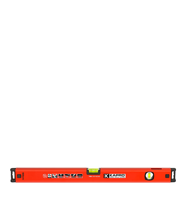 Уровень Kapro используется для строительных и отделочных работ. Предназначение данного прибора — определение отклонений поверхностей и различных конструкций от горизонтали или вертикали. Все уровни бренда Kapro имеют высокую точность и надежность. Легкий и прочный алюминиевый корпус с ребрами жесткости и фрезерованной рабочей поверхностью обеспечивает долгий срок службы. Резиновые выносные элементы торцевых заглушек, выполняют противоскользящую функцию на гладких поверхностях (металл, стекло, кафель). Запатентованная технология нанесения разметки (линий) внутри колбы — гарантия точности показаний. Так же имеются дополнительные риски, что обеспечивает измерение уклона в 2%. С запатентованной системой Plumb Site® Dual-View™ в конструкции уровня можно удобно и быстро проверить вертикальные отклонения: достаточно одного взгляда в прямой смотровой паз. Надежное крепление колб на эпоксидную смолу, а сами колбы выполнены из полиакрила устойчивы к ультрафиолетовым лучам. Материал колб устойчив к механическим воздействиям и растрескиванию при случайных падениях. Все уровни бренда Kapro проходят электронное тестирование колб и электронную калибровку точности.
