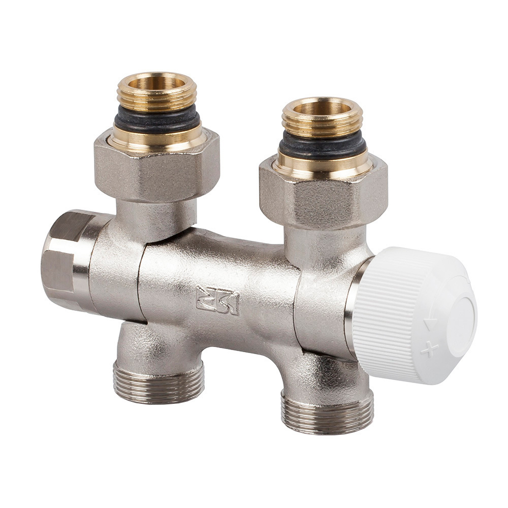 Вентиль термостатический оснащен встроенным устройством для предварительной настройки пропускной способности и запорный клапан, межосевое расстояние 50 мм для одно/двухтрубных систем с ориентируемыми соединениями (для отвода в пол или стену), пошаговая регулировка by-pass, сменное соединение для медных и многослойных труб.