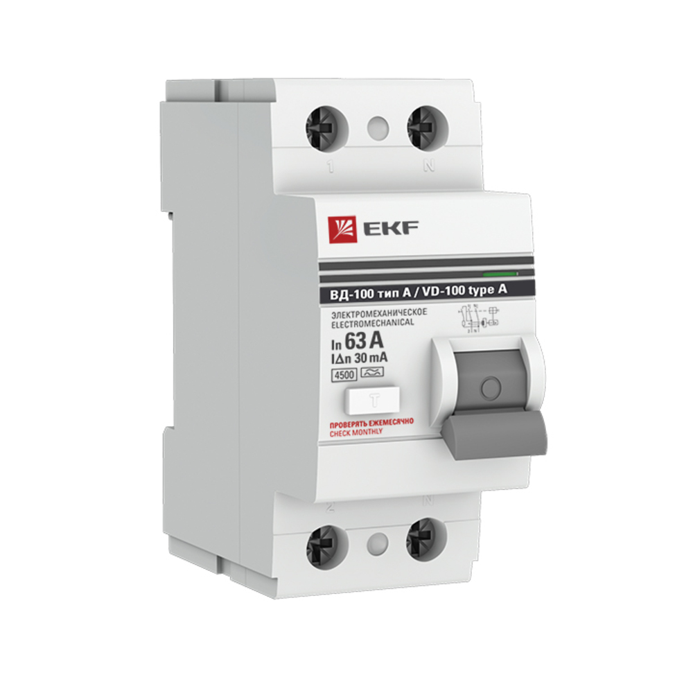 УЗО EKF PROxima ВД-100 63А 1P+N тип A 30 мА 4,5 кА (elcb-2-63-30-em-a-pro)