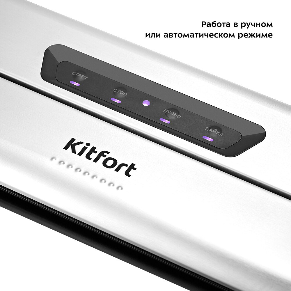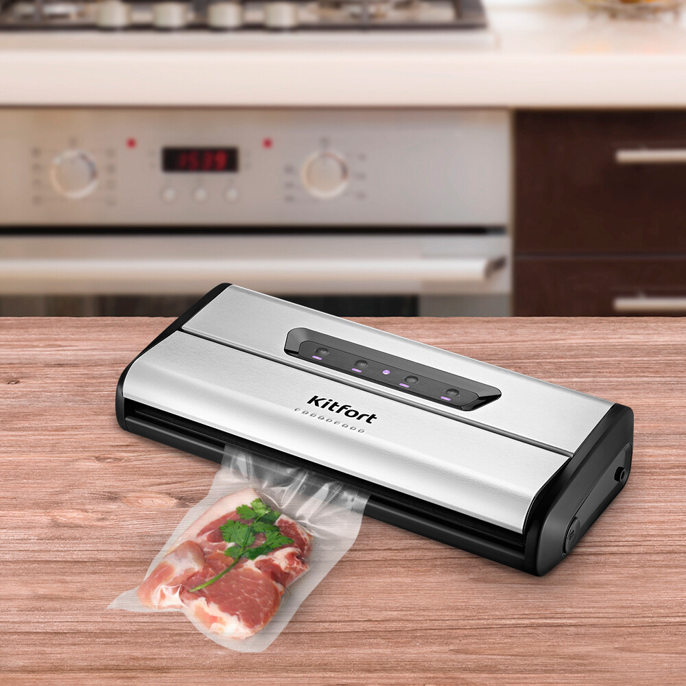 Вакууматор Kitfort КТ-1515 обеспечит долгие сроки хранения ваших любимых продуктов. Продукты, упакованные под вакуумом, сохраняют дольше аппетитный вид, вкус и полезные свойства, а портятся существенн…