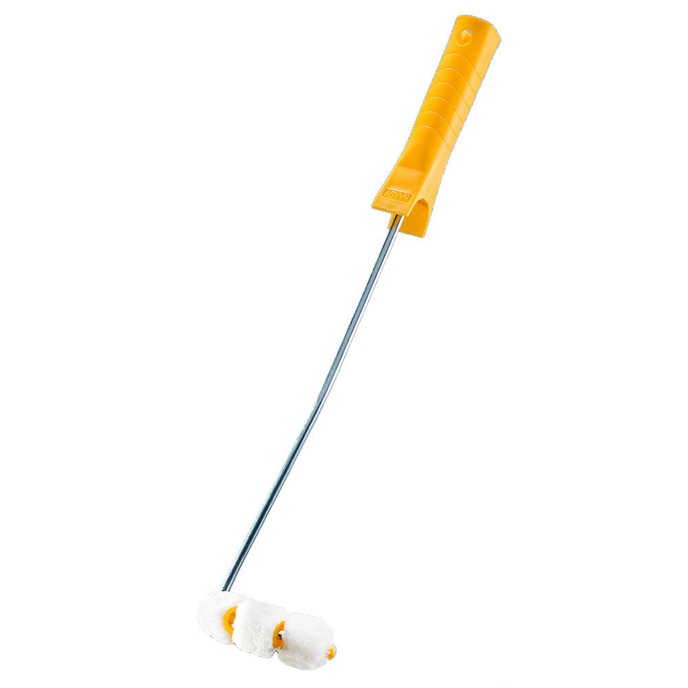 Валик для покраски труб выполнен в изогнутой форме, что позволяет быстро и равномерно нанести краску.