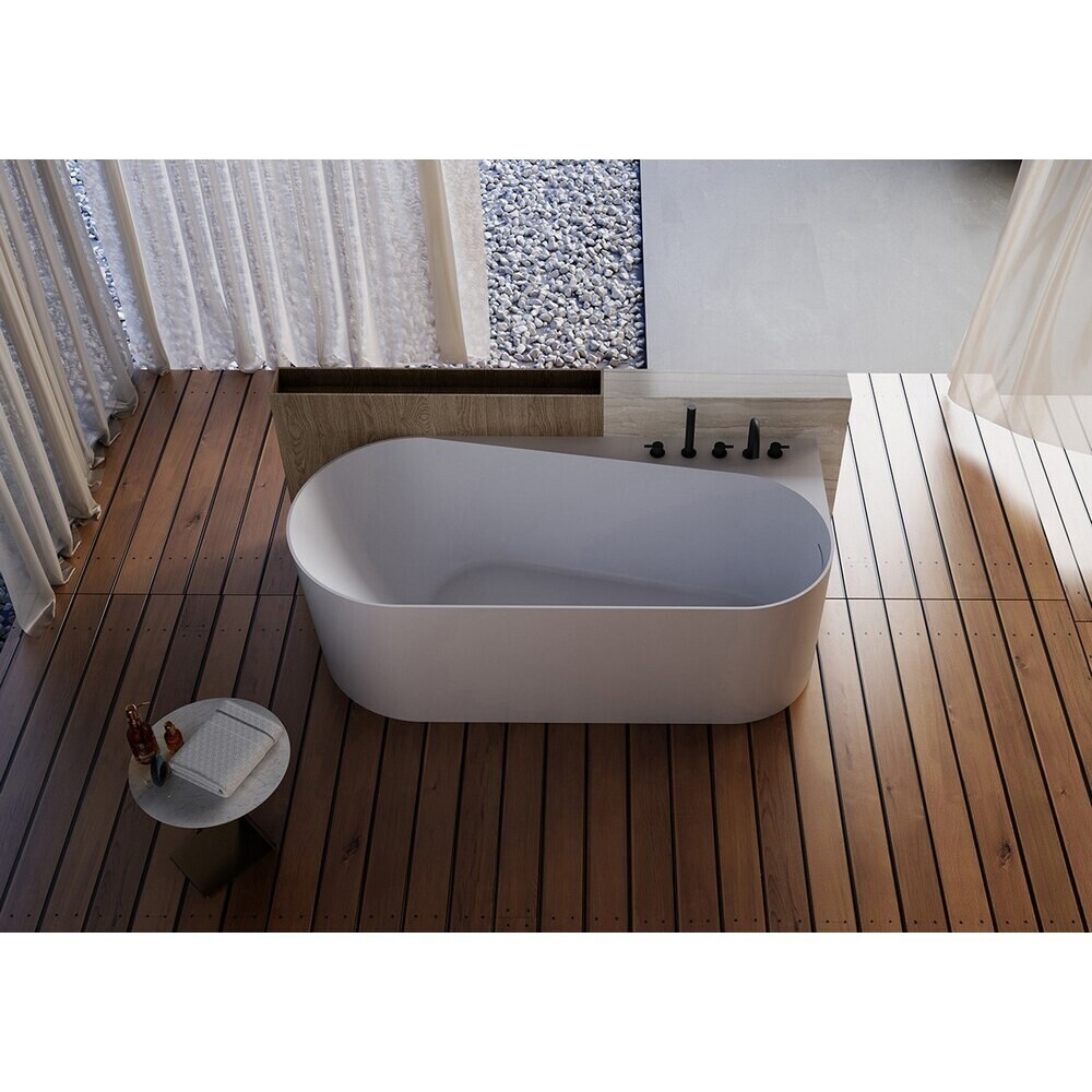 Ванна Abber, выполненная из 100% санитарного акрила, имеет ассиметричную форму. Сливное отверстие расположено сбоку. Размер ванны составляет 170х78 см, объем — 240 л. Ванна выдерживает максимальную нагрузку 450 кг.