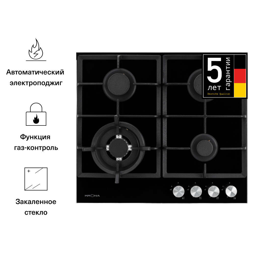 Варочная панель газовая Krona Alma 60 4 конфорки черная