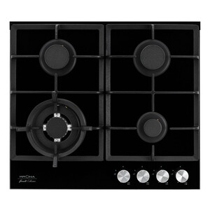 Стильная газовая варочная поверхность на 60 см в черном цвете выполнена из прочного термостойкого стекла.