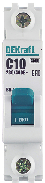 Первоначальная цена составляла 627 ₽.609 ₽Текущая цена: 609 ₽.шт.Автоматический выключатель модульный Dekraft BA-101 1P 10А тип C 4,5 кА 230/400 В (11053DEK)