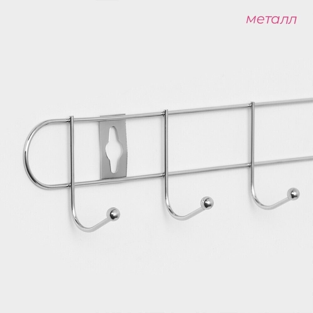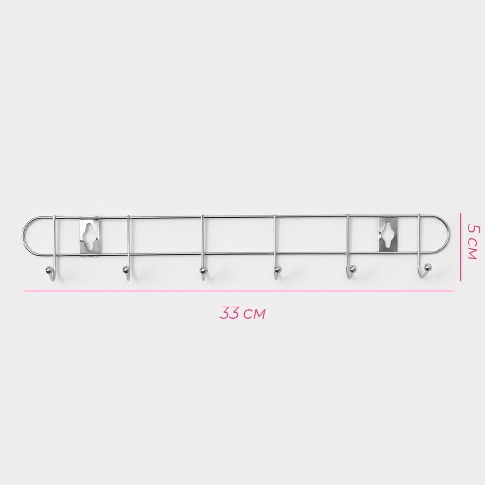 Вешалка для ванной Доляна Лето 6 крючков на шуруп металл хром (131452)
