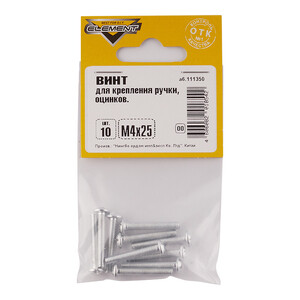 Винт для крепления ручки оцинкованный M4х25 мм полусферическая головка (10 шт.)