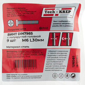 Винт оцинкованный M6x30 мм DIN 7985 полукруглая головка (9 шт.)