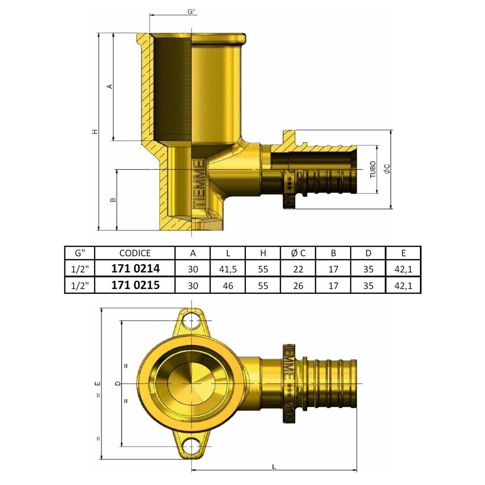 Водорозетка Tiemme 16 мм х 1/2 ВР(г) удлиненная латунь (1710214)