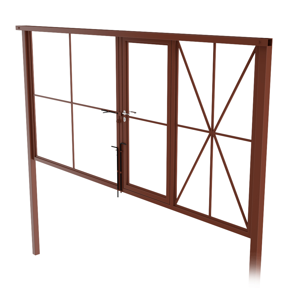 Ворота распашные каркас со столбами 3,5х1,85 м с калиткой коричневые RAL 8017