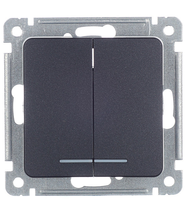 Выключатель Hegel Master двухклавишный встраиваемый черный с подсветкой (ВС10-452-08)