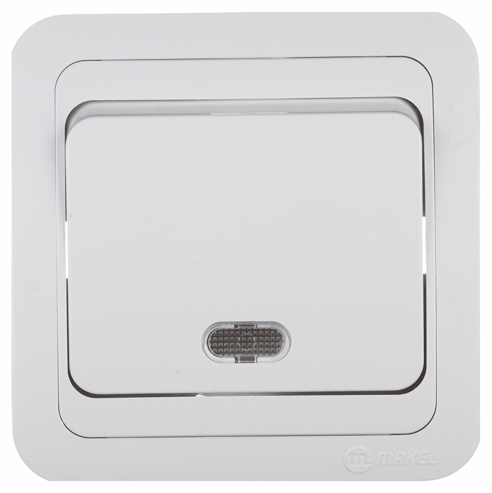 Выключатель Makel Mimoza одноклавишный встраиваемый белый с подсветкой (12021)