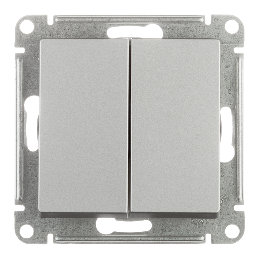 Выключатель Systeme Electric AtlasDesign Aqua двухклавишный встраиваемый алюминий (ATN440351)