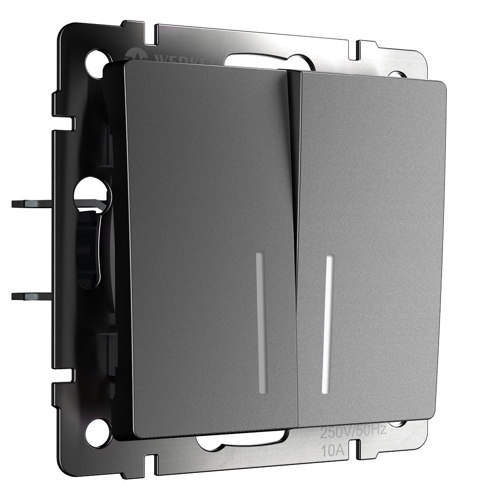 Выключатель Werkel двухклавишный встраиваемый графит матовый проходной с подсветкой (a063102)