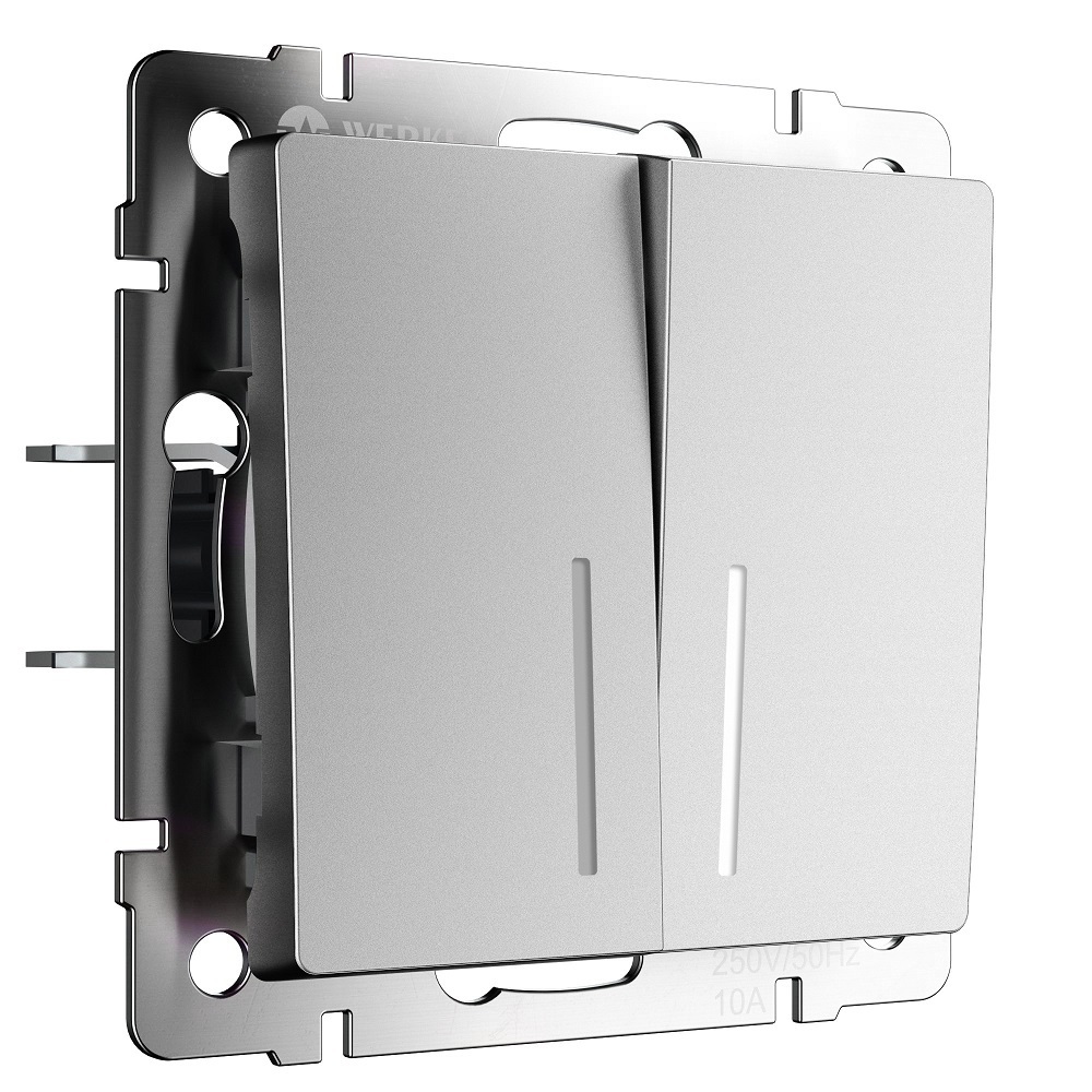 Выключатель Werkel двухклавишный встраиваемый серебряный матовый проходной с подсветкой (a063616)