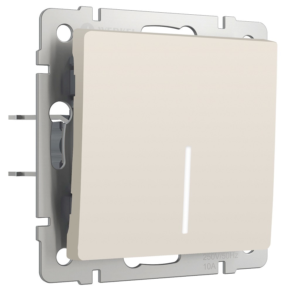 Выключатель Werkel одноклавишный встраиваемый айвори матовый проходной с подсветкой (a062418)