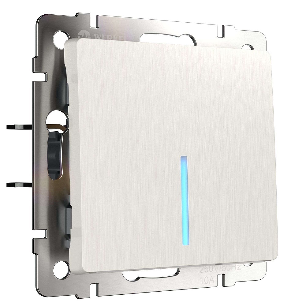 Выключатель одноклавишный с подсветкой перламутровый рифленый W1110113 совместим со всеми рамками из коллекций Werkel™ это позволяет создавать оригинальные, стилевые и цветовые комбинации.
