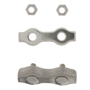 Зажим Duplex для сращивания стальных тросов, канатов размером 3 мм. Также он применяется для создания петель на концах тросов. Двойной зажим Duplex гораздо прочнее при сращивании одинарного Simplex. Независимо от типа, рекомендуется устанавливать не менее двух стальных зажимов.