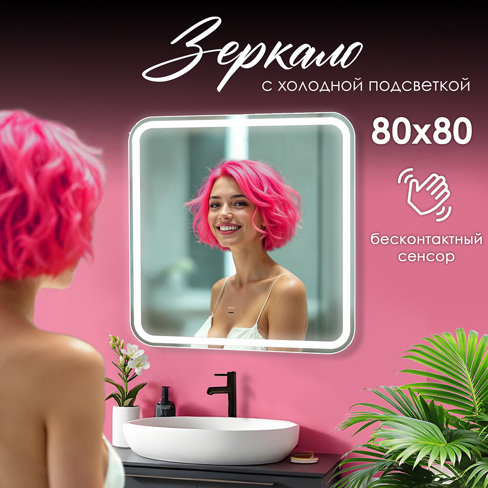 Зеркало с подсветкой квадратное 80х80 см бесконтактный сенсор Raval Gassi (GAS-8080_BS)