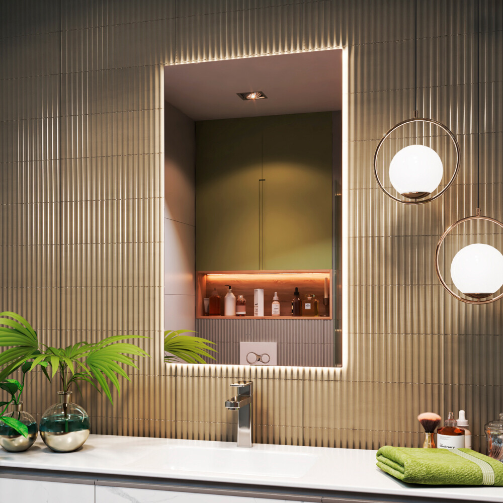 Зеркало для ванной комнаты обладает датчиком управления на «взмах», светодиодной подсветкой и функцией антизапотевания.